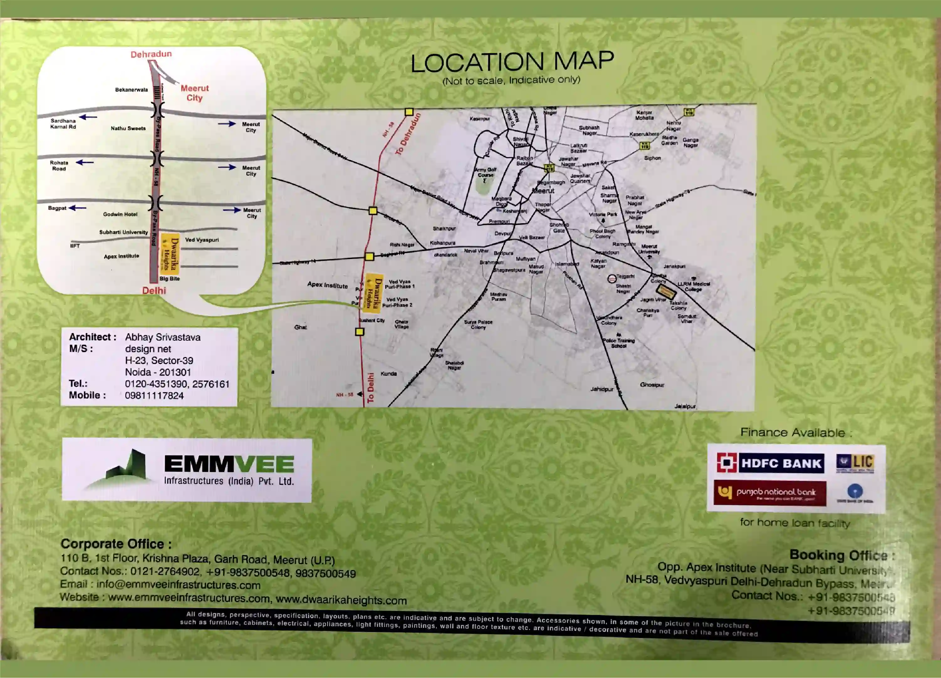 EMM VEE Infrastructures (India) Pvt. Ltd. is a trusted name in real estate, delivering quality and affordable housing. With Dwaarika Heights, the brand brings together thoughtful planning, structural reliability, and accessible pricing, creating a residential landmark in Meerut’s fastest-growing corridor.